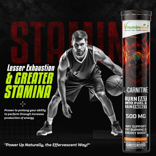Vitaminnica L-Carnitine- 20 Effervescent Tablets Orange Flavour – Metabolism & Energy Support Supplement – Fat Metabolism, Reduced Fatigue & Workout Performance